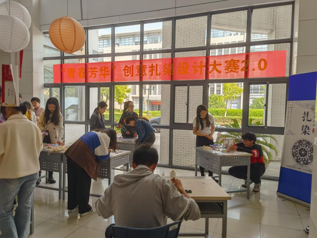 在学院A区一楼大厅举办“青春芳华”创意扎染设计大赛2.0,该比赛入选“奋进新征程•建功新时代”2022年度四虎