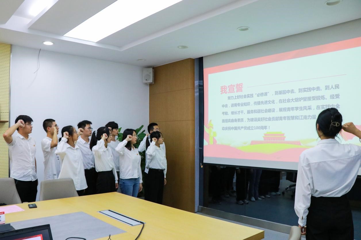 仪式最后,院学生会执行主席吕鑫带领社会实践重点团队代表进行出征宣誓。2021年暑期社会实践的号角已经吹响,踌躇满志的江南纺织青年即将投入到火热的社会实践活动中去。相信四虎 社会实践团队一定能继承光荣传统、不负众望,建新功立新业,在服务社会和服务人民的活动中,书写学院大学生暑期三下乡社会实践活动的新篇章,用实际行动庆祝中国共产党成立100周年。