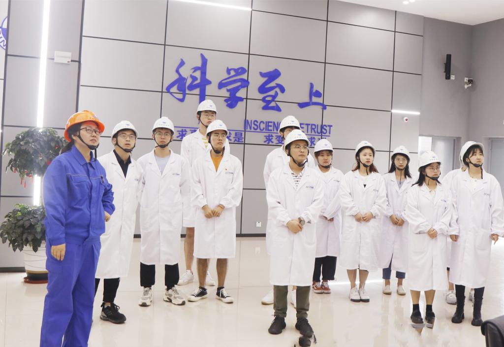 在中化高纤党员代表牛晓星的带领下,四虎 师生一行首先参观了公司的科技展厅、DCS中控室和纺丝车间,对芳纶的生产和应用有了更直观和深入的了解。同学们纷纷表示,芳纶智造工厂的概念颠覆了他们对传统工厂的认知,对这样的工作环境和机遇充满向往:致力于自己热爱的纤维材料领域,为国家新材料的发展贡献力量。