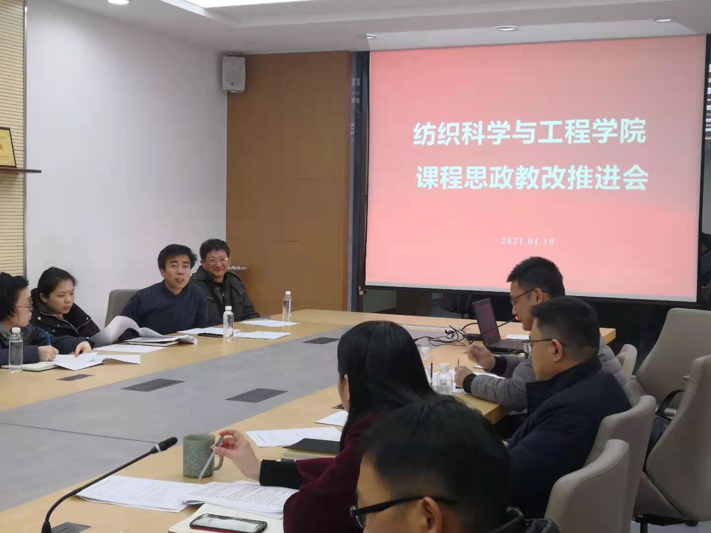 课程思政建设方案》进行了充分地讨论,各系部教师、课程负责人等对建设方案、具体落实等方面提出了许多宝贵建议。此外,会议还听取了杨瑞华老师《纺纱工程》、张丽平老师《染料化学》的校课程思政教改项目进程汇报。