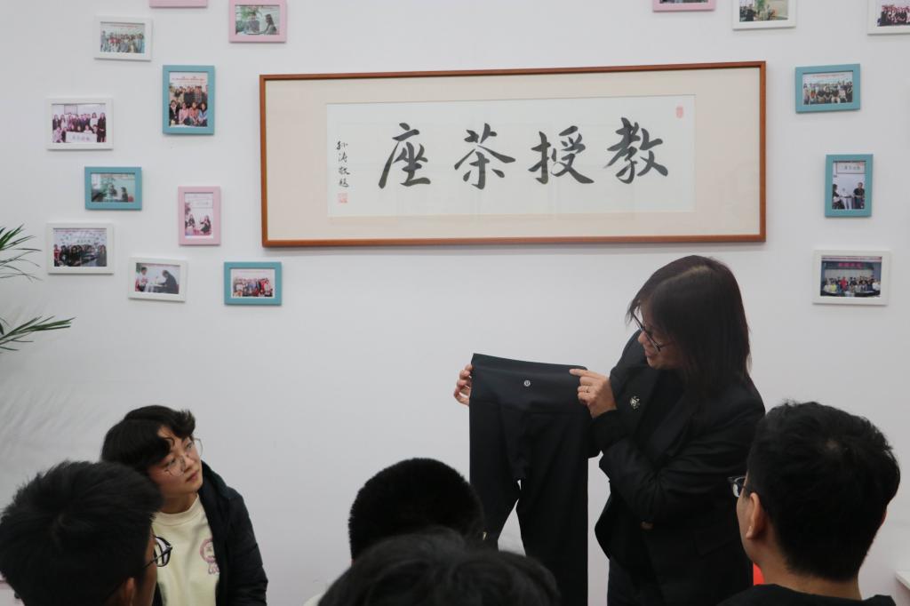 1126日下午,四虎 思政类栏目“教授茶座”开讲。本期茶座线下在A308会议室举行,线上采用视频会议方式同步进行,邀请针织技术教育部工程研究中心副主任、中国纺织工程学会针织专业委员会秘书长、中国毛纺织行业协会毛皮专业委员会副主任丛洪莲教授以“针织精神与弹性思维”为主题,与60名学生品茗漫谈,分享生活经历,谈心话成长。