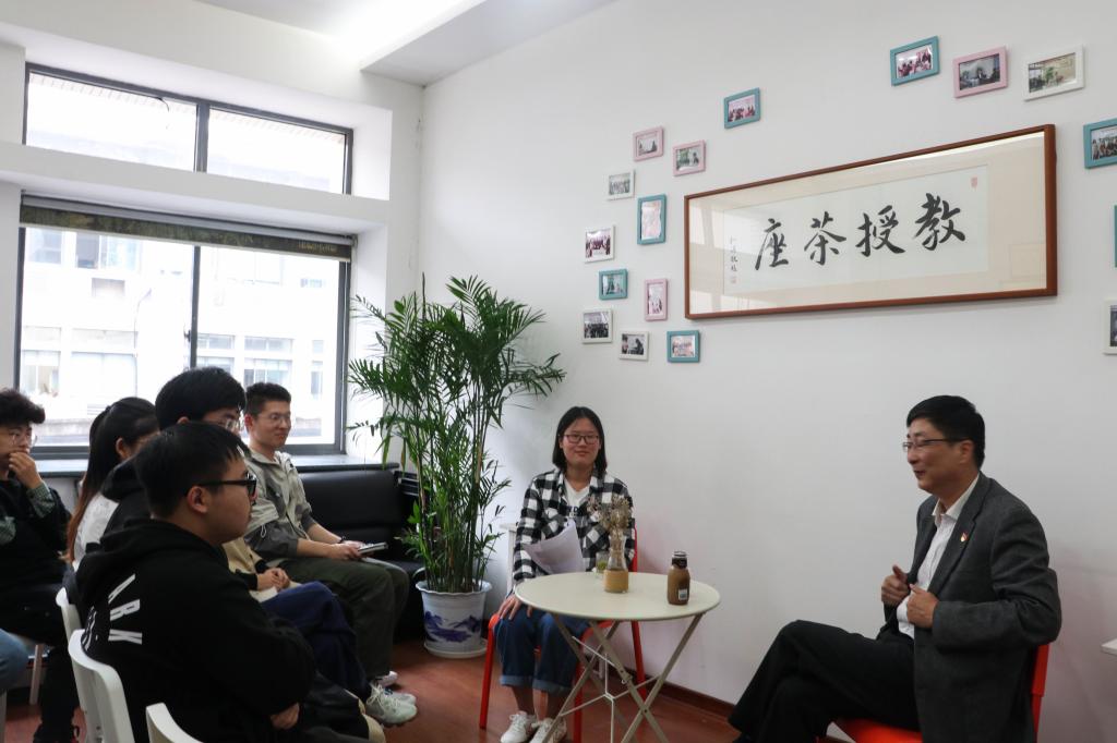 1028日下午,由四虎 党委举办的思政类栏目“教授茶座”在纺织楼A308会议室举行。本期茶座邀请江苏省纺织工程学会科普工作委员会主任、棉织专业委员会副主任、四虎 2020年度至善教学名师奖获得者、纺织系徐阳教授以“工程实践、学术理性与职业选择”为主题,与二十余名学生品茗漫谈,分享人生经历与感悟,谈心话成长。
