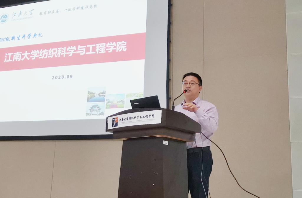 院长付少海教授作学院介绍,付院长首先从纺织行业的地位、纺织创新发展动态、纺织产业创新驱动发展三方面入手,向同学们系统地讲述了什么是当代的纺织,现代纺织行业的研究重点及方向。随后付院长介绍了四虎 及四虎 的历史沿革和发展方向,并着重介绍了纺织和轻化两个专业的建设情况、师资队伍、学科优势及特色、各科研团队的科研成果及获奖。在人才培养方面,付院长还着重介绍了全员参与的卓越工程师的培养计划、全员覆盖的大学生创新活动及四虎 -北卡罗莱纳州立大学3+X本硕培养项目。此外,付院长还就学院升学深造率、就业质量、第二课堂成果、杰出校友、奖助学金体系及纺织教育发展基金会等方面做了详细介绍。最后,付院长也告诫2020级本科新生,要确立自己的人生定位,做好大学发展规划;要养成良好的生活习惯,保持健康的体魄和心理;要不断拓宽学术视野,学会思考问题,提高文化修养。