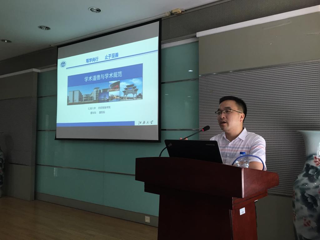 学术不端行为调查处理方法》的相关条例,以风趣幽默的语言对“课题申报”、“研究对象与评价原则”以及“遵纪守法弘扬科学精神”等方面进行分析与讲解。潘如如教授告诫同学们在研究生阶段必须在实验的基础上发表各类学术论文,并且强调原始实验记录保留的重要性。