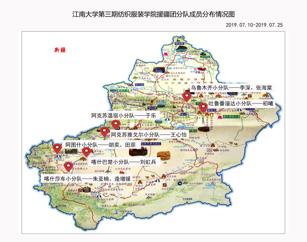 第三期纺织服装学院援疆团分队成员分布情况图