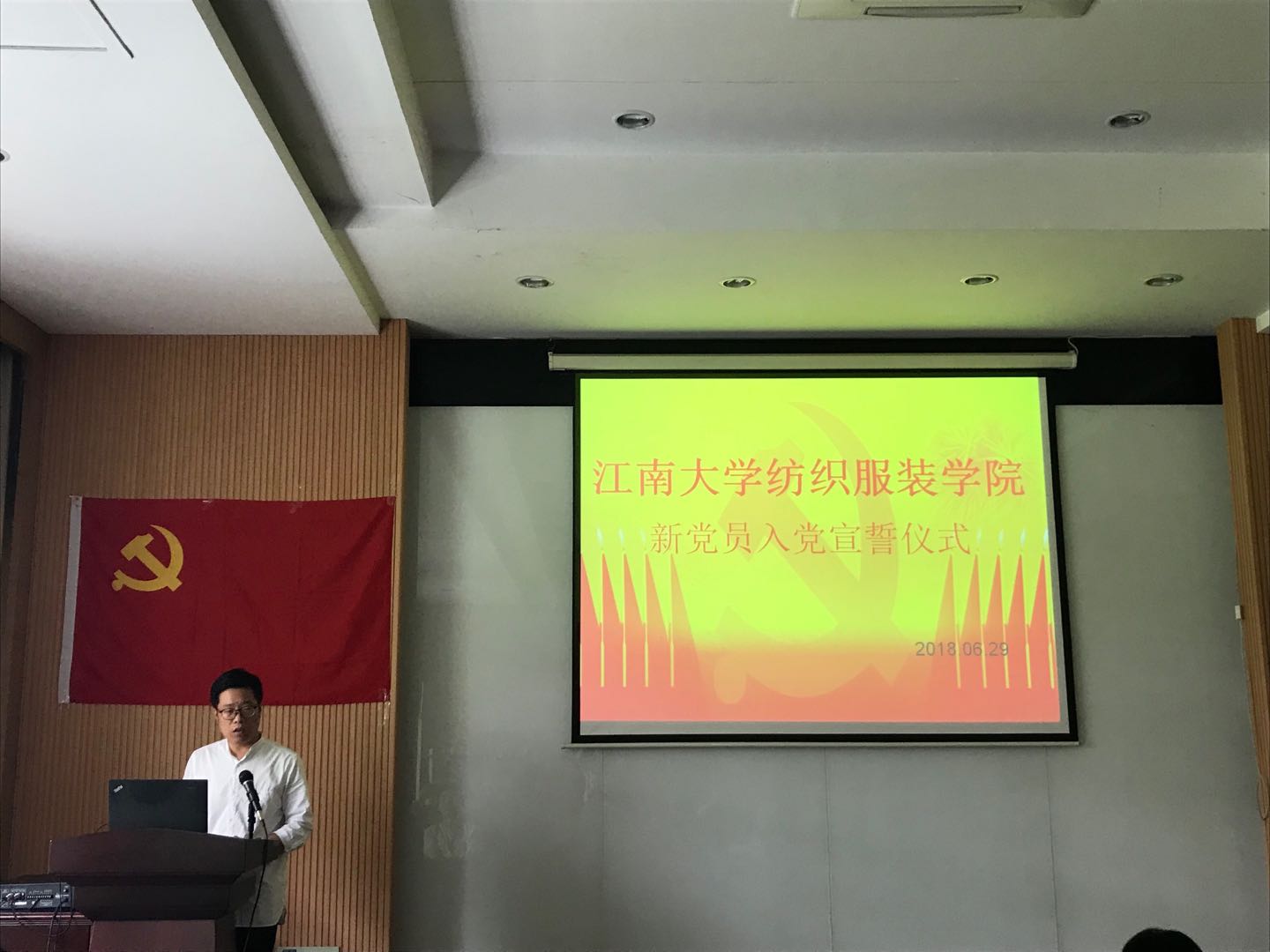 6月29日中午,纺织服装学院新党员入党宣誓仪式在纺院B104会议室举行。学院党委书记张菁、党委副书记周云龙出席了此次仪式。学院共21名新党员参会,大会由周书记主持。