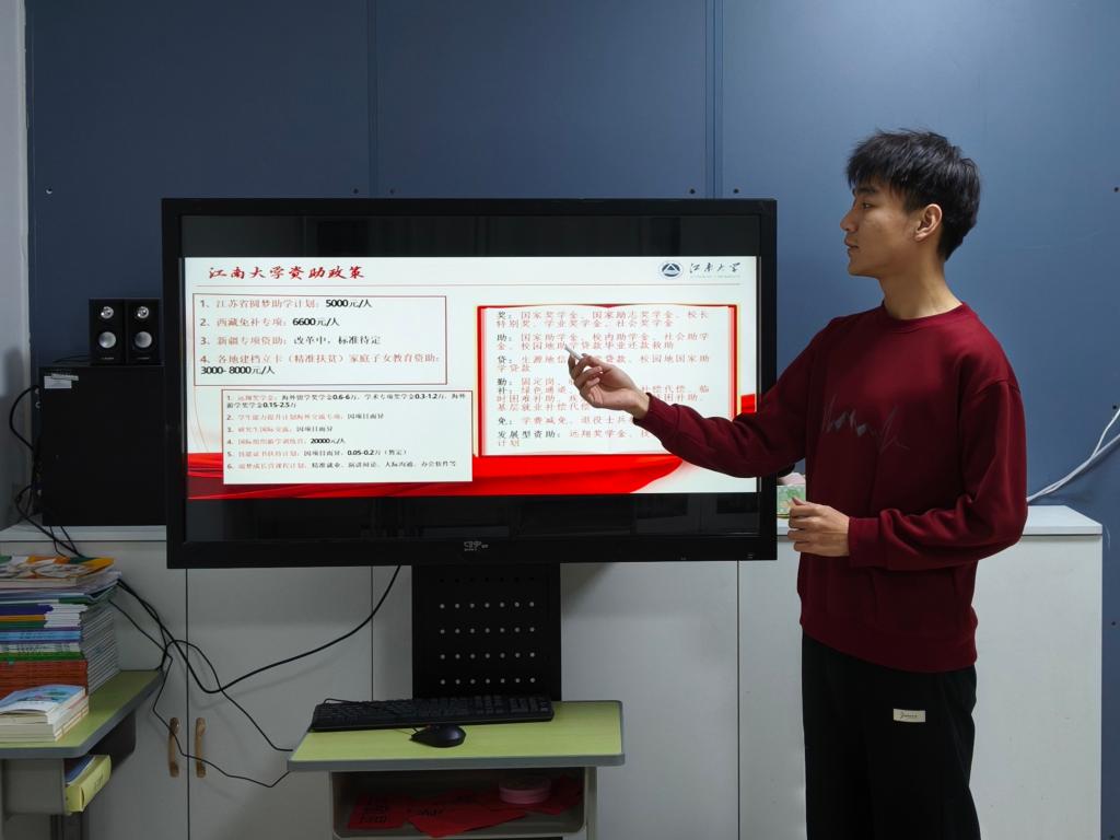 轻化2201班的赵勃涵同学奔赴内蒙古自治区赤峰市六西街党群服务中心,为中高考应届生及其家长们开展了一场资助政策解读会。他围绕江苏省本科生资助政策以及学校相关资助举措,通过耐心的政策讲解、互动答疑以及生动的案例分享,解答了学生家长们普遍关心的申请条件、办理流程等问题。