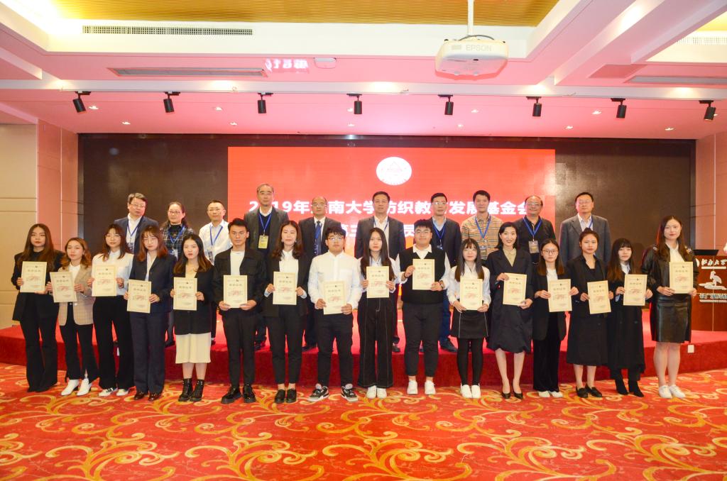 纺织教育发展基金会奖学奖教实施条例》,2019年度共评选出奖学金获得者134人次,奖教金获得者6位,在提高奖学总额的同时扩大学生受奖面,充分发挥基金会对的育人工作的大力支持。大会还进行了基金会理事会的换届改选,以及章程、奖学奖教实施条例修订的审议与表决。大会选举产生了第三届理事会理事、副秘书长、秘书长、常务理事、副理事长、理事长等。副理事长苏州安派精密电子有限公司董事长邵太春先生代表新一届理事会致辞,充分肯定了基金会弘扬与传承纺服“诚实、踏实、务实”的精神与彰显纺服“团结、奋进、自强”文化的特色与理念,并表示,将不忘初衷,继续做好基金会的各项工作。