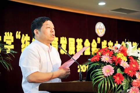 最后,校教育发展教育基金会理事长王武教授介绍了学校教育发展基金会的状况,肯定了纺织服装学院作为二级学院,首家成立教育基金会的榜样作用和意义。