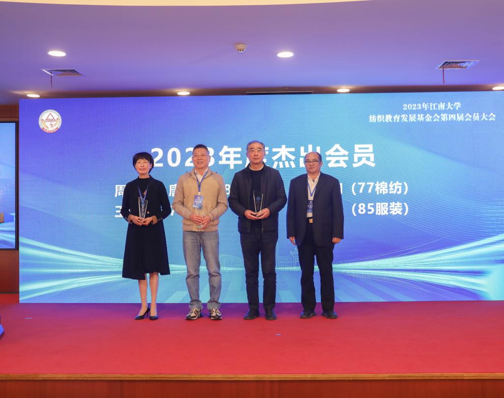 大会对本年度新增的13名会员颁发了会员证,戴磊教授作为新增会员代表发言。高卫东向年度新捐赠额达到10万元整倍数的周文涛唐秋波夫妇、高春和、王宝玉、梁惠娥校友颁发杰出会员纪念杯,感谢他们兴学助教、乐育英才的善行义举。奖教奖学颁奖环节,4位教师荣获“育人奖”,37位学生荣获“新锐奖”“竞赛奖”“海学奖”,20位校友自毕业后连续三年服务于纺织服装行业,荣获“征程奖”。服装系主任柯莹、原纺织1703班许永正分别作为获奖师生代表发言。