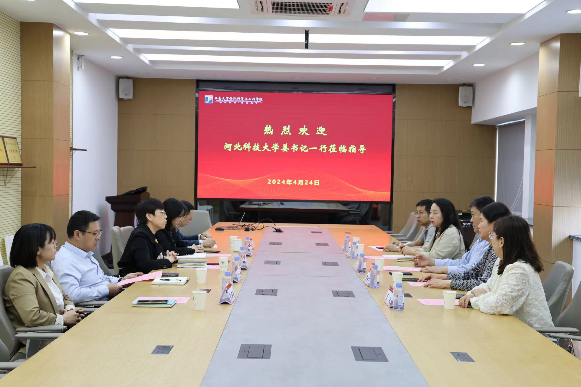 4月24日,河北科技大学党委常委、纪委书记、监察专员姜昆,河北科技大学纺织服装学院党委书记陈树玉等一行来四虎