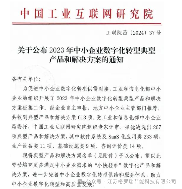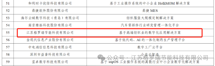 校友企业江苏格罗瑞节能科技有限公司的“基于高端纺织业的数字化应用解决方案”荣获国家级荣誉,被工业和信息化部中小企业局选入2023年中小企业数字化转型典型产品和解决方案之列。