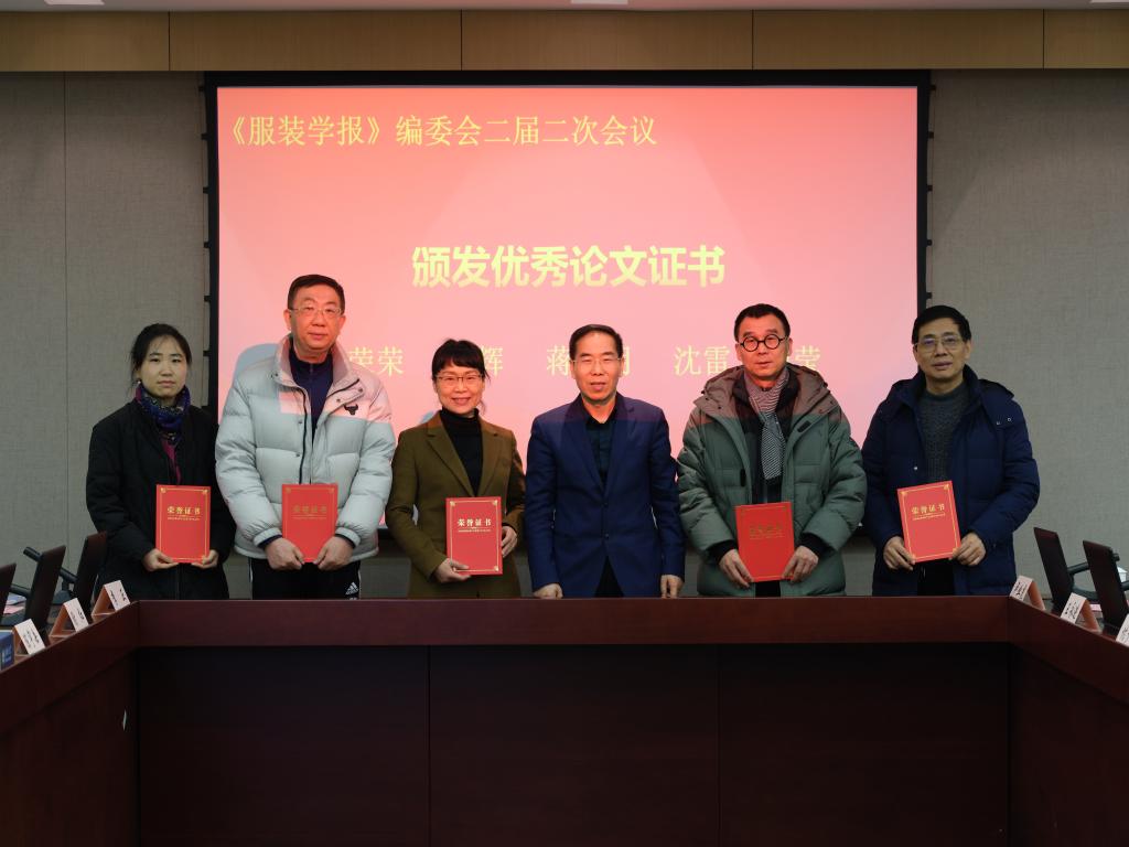 会上还表彰了《服装学报》优秀审稿专家及优秀论文,徐卫林宣读获奖名单并为优秀论文作者代表颁奖,高卫东为优秀审稿专家代表颁奖,感谢他们为《服装学报》作出的贡献。