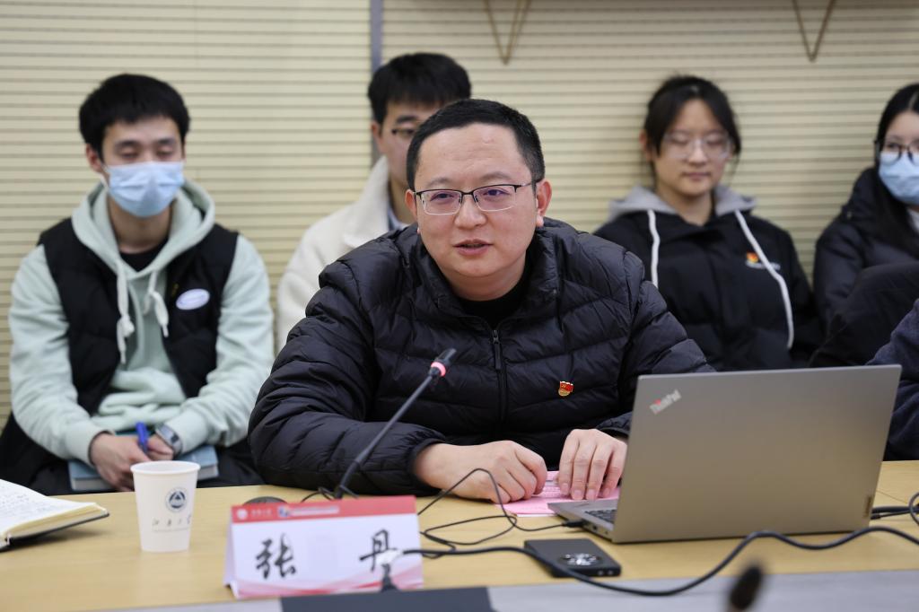 张丹以《我心中的教育家精神》微视频引入习近平总书记在致全国优秀教师代表座谈会与会教师代表的信中提出的中国特有的教育家精神,并以《大力弘扬教育家精神争做新时代大先生》为题作微党课,从“大情怀、大德行、大智慧、大学问、大爱无疆和大事业”方面阐述并讲解了教育家精神的深刻内涵和时代意义。