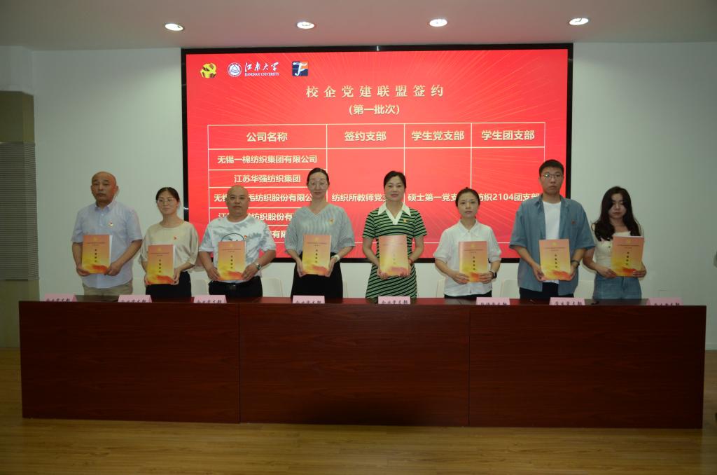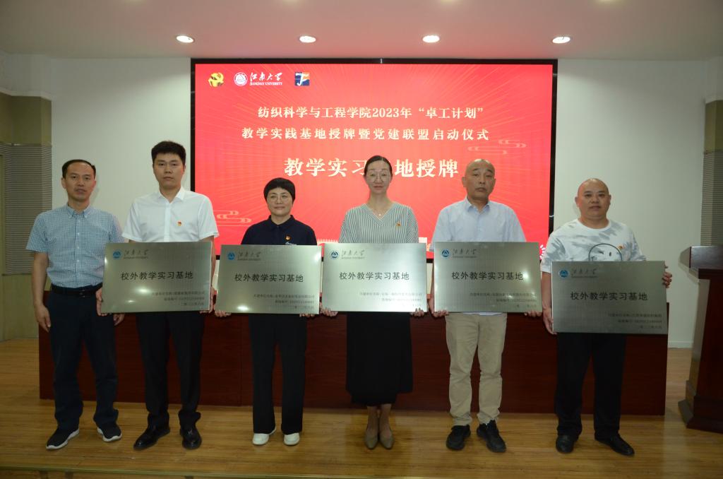 随后,学院纺织所、针织所、纺织系等师生党团支部与无锡一棉、江苏华强、无锡协新、江苏联发、常州黑牡丹等16家企业党支部共同签约了《党建联盟协议书》,举行了“卓工计划”教学实习基地签约及授牌仪式。与会人员围绕党建联盟、卓工计划、校企合作、人才培养、产学研融合等进行了座谈交流。