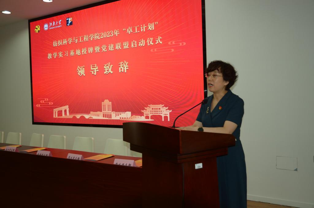 作为全国首批“卓工计划”实施单位,始终把工程能力作为人才培养体系的重要环节,“全员覆盖、全面重构、全程协同”的纺织工程“卓越计划”人才培养的研究与实践荣获国家教学成果二等奖。学院将以此次党建联盟和教学实习基地授牌为契机,进一步统筹组织、人才、科技优势,推动组织链、人才链、创新链、服务链深度融合,切实把党的政治优势、组织优势转化为人才培养胜势、企业竞争优势,努力绘就高质量党建的“同心圆”,扩大高质量发展的“朋友圈”,全面构筑校企合作新局面。