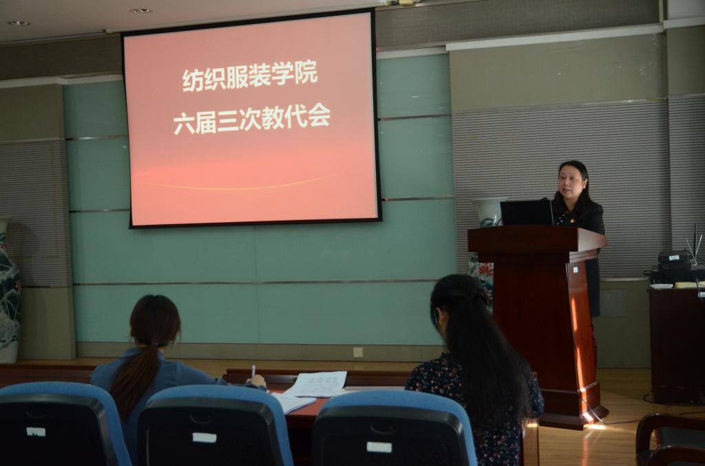 2019年11月1日,纺织服装学院六届三次教代会在院A103报告厅召开。会议由院党委书记张菁主持。