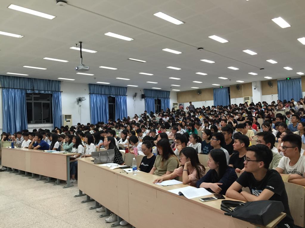 副校长陈卫教授走进思想政治理论课课堂,为纺织服装学院2015级、2016级本科生讲授形势与政策课,500多名学生参加学习,学院党委书记张菁,党委副书记周云龙,辅导员王统斌、陈裕、马倩如到现场听课。