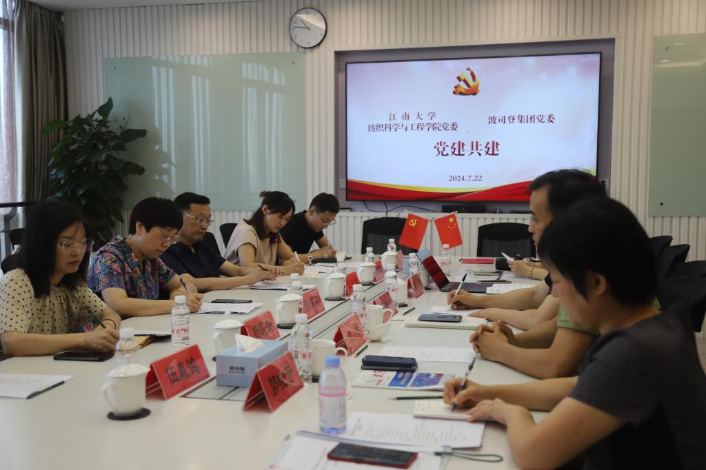 党委书记张菁燕率队赴波司登集团开展党建共建暨访企拓岗交流。无锡市纺织工程学会理事长、学院教授王鸿博,学院党委副书记、副院长杨莉勤,师生党支部代表参加调研。学院94届校友、波司登集团高级副总裁兼波司登事业部总经理芮劲松,集团党委副书记、总裁助理、全国工商联纺织服装业商会秘书长朱军,集团事业部人力资源部总监黄琳,集团党建经理郭小芳热情接待。