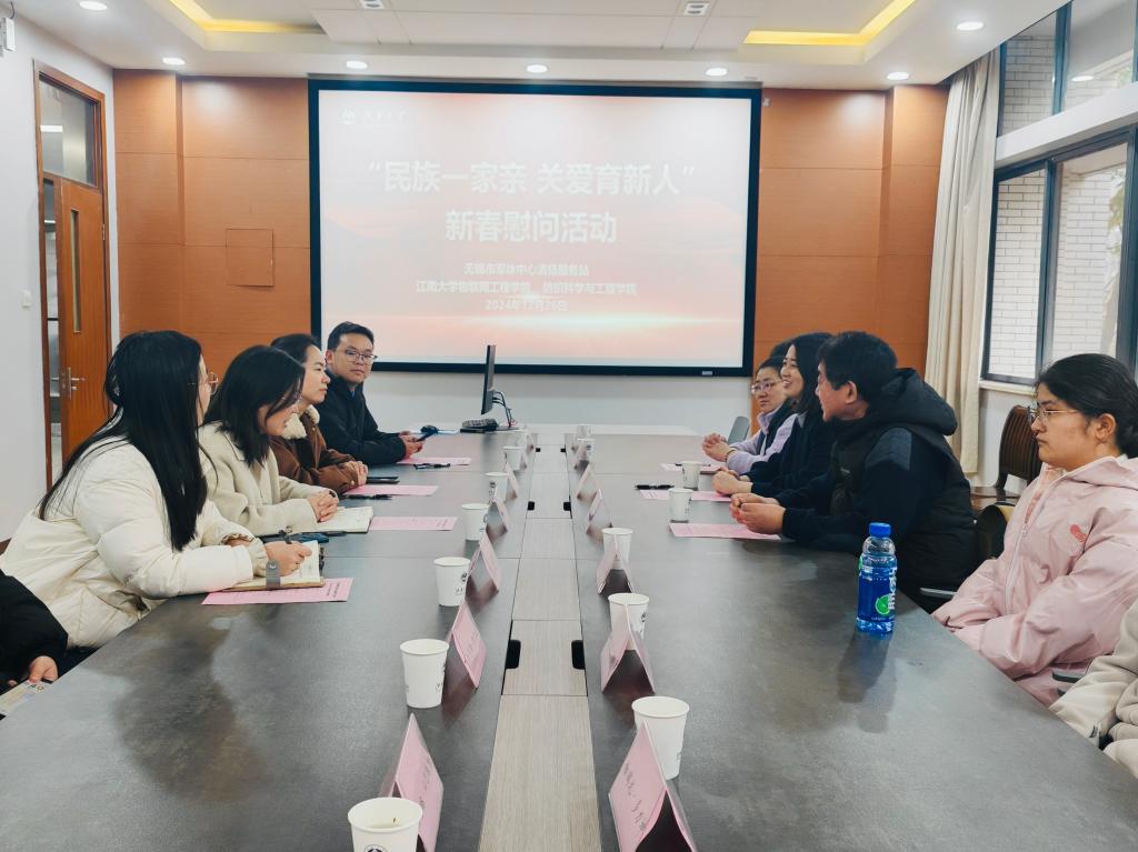 、物联网工程学院举办“民族一家亲,关爱育新人”新春慰问活动。无锡市军休中心清扬服务站副站长蔡淑野,军休干部代表王小进,无锡市军休中心清扬服务站站员朱佳,四虎