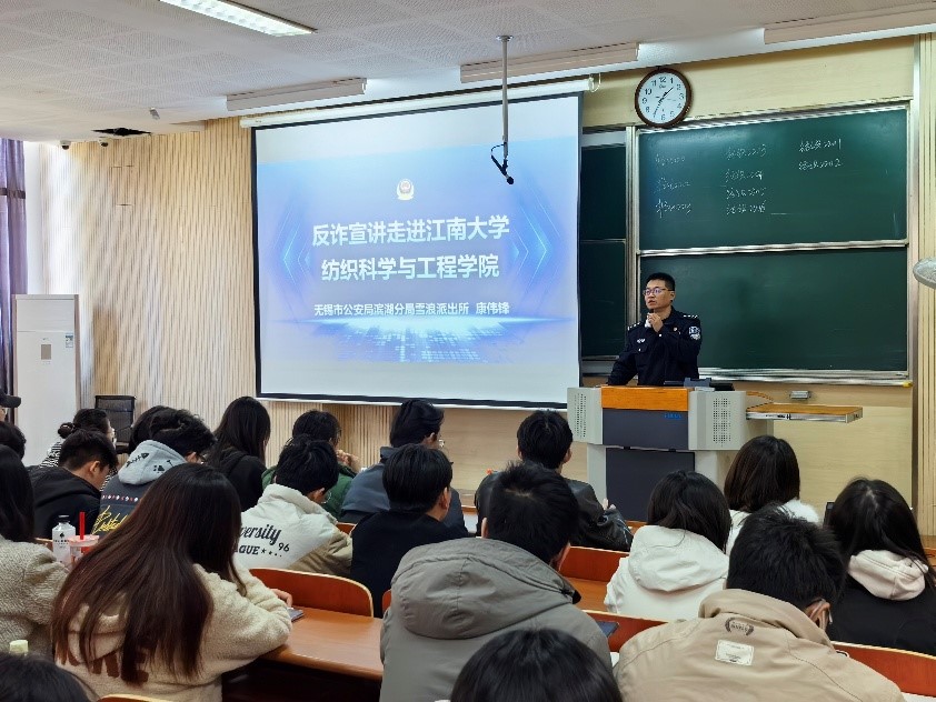 2022级、2023级、2024级本科生年级在安全教育宣传月召开年级大会并进行反诈宣讲。无锡市公安局滨湖分局雪浪派出所的警官们走进四虎