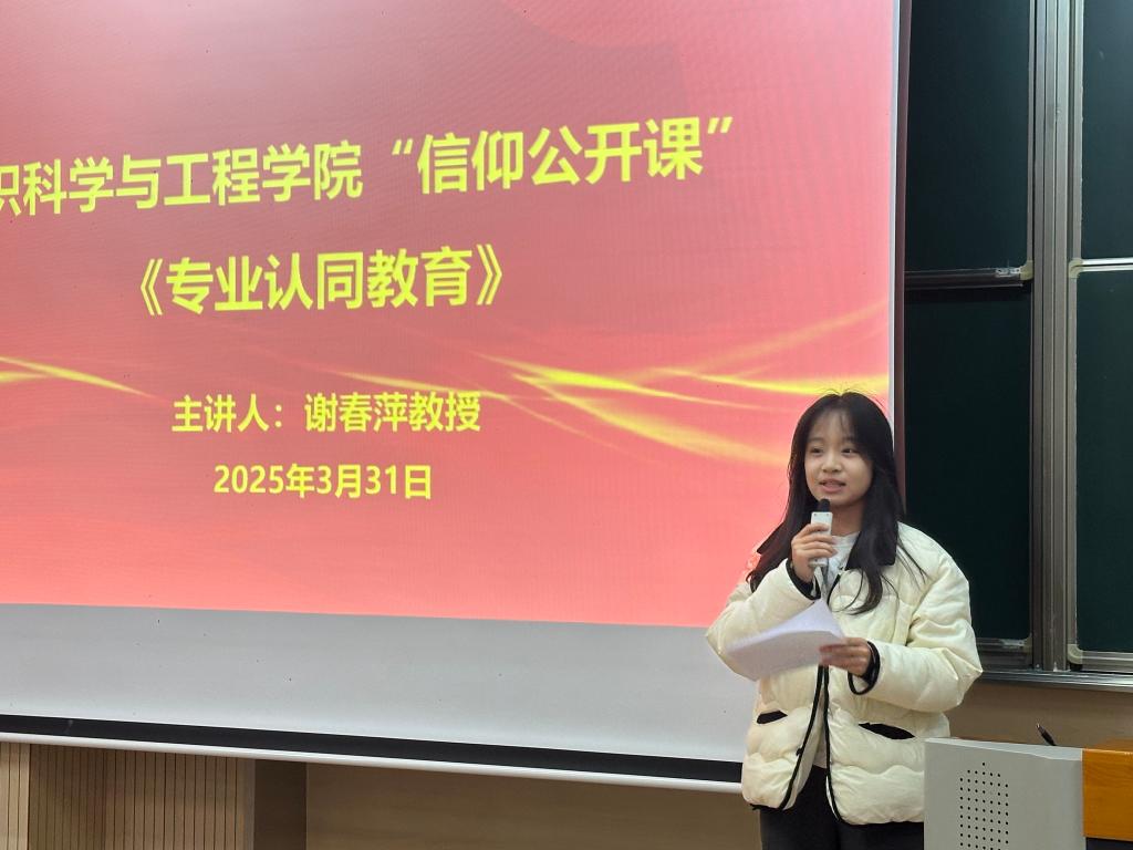 特邀报告员、学院关工委委员谢春萍教授担任主讲嘉宾,学院辅导员孙慧及2024级全体本科生参与本次活动。活动由团委通讯社李佳雯主持。