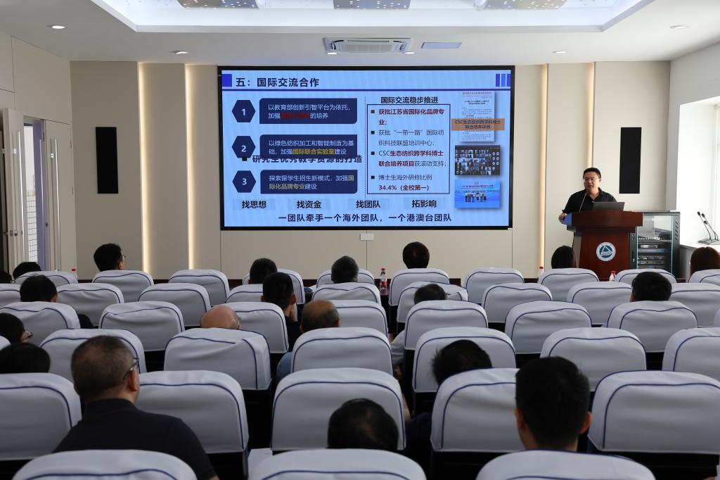 会议最后,张菁燕作总结讲话。她以“经天纬地”“千丝万缕”“万物可织”三个纺织关键词作了工作总结与部署。她指出,“经天纬地” 彰显纺织学科的战略价值,学院需紧扣时代脉搏,提高站位,在国家教育强国、制造强国战略中找准方向;“千丝万缕” 体现学院发展的协同性,需加强领导班子、教授团队、师生之间的联动,形成“上下一心、同向发力”的良好局面;“万物可织” 则凸显纺织学科的创新活力,要推动学科交叉融合,在“新纺织”领域开辟新赛道。