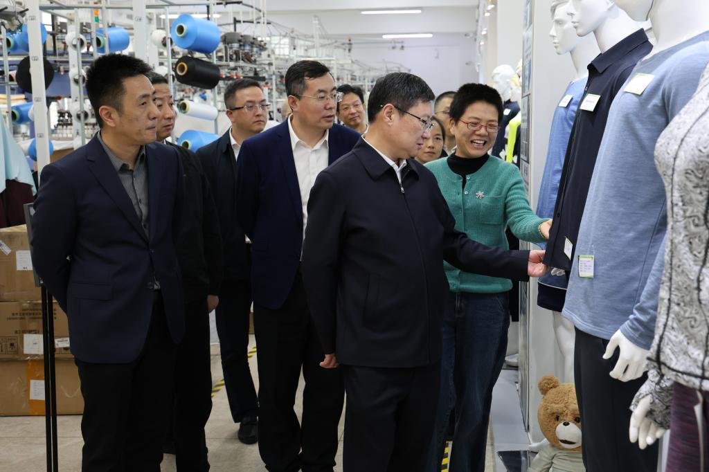 调研期间,周文栋副市长一行实地考察了学院相关实验室与科研平台,参观了针织技术教育部工程研究中心,详细了解了学院在先进纺织技术、绿色染整、生物基材料、智能纺织品等前沿领域的最新科研进展与技术突破,并听取了学院关于学科建设、人才培养及产学研合作情况的汇报。座谈会上,市科技局、工业和信息化局、市场监管局、商务局等相关负责人就如何更加深入地开展校地共建进行了研讨交流。