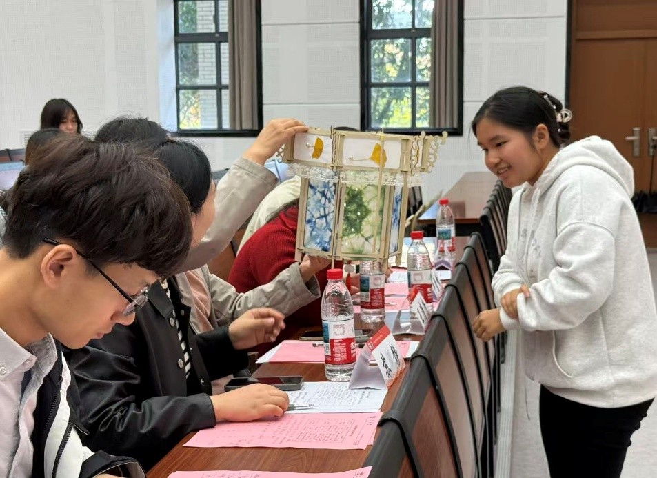 创作完成后,各团队现场展示作品并详细阐述设计理念与精神内涵:“潮涌非遗,文化编码”赛道聚焦文化符号现代化转译与潮流表达,彰显Z时代美学融合;“诗意江南,数字经纬”赛道探索人文意象与扎染技法的平衡,呈现数字语言与江南意境的创意碰撞;“青衿赤心,时代锦绣”赛道以扎染技艺回应时代变革,传递青年担当。