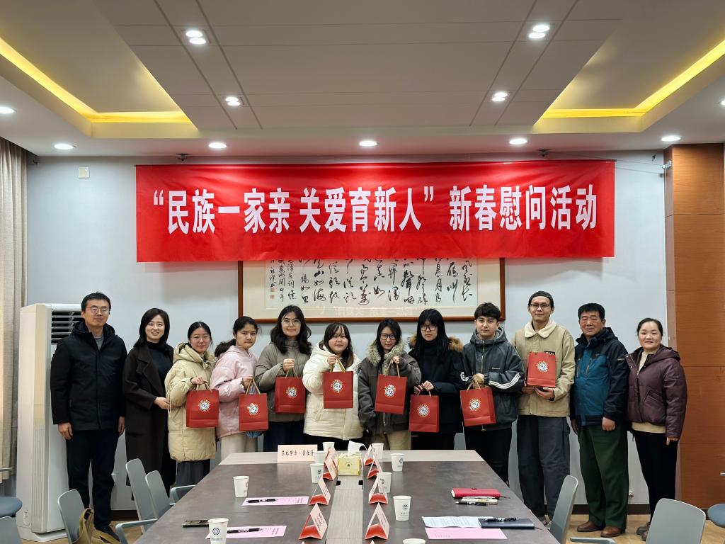 、物联网工程学院举办“民族一家亲,关爱育新人”新春慰问座谈会。无锡市军休中心清扬服务站副站长蔡淑野,无锡市军休中心清扬服务站关工委副主任王小进,无锡市军休中心清扬服务站站员朱佳,四虎