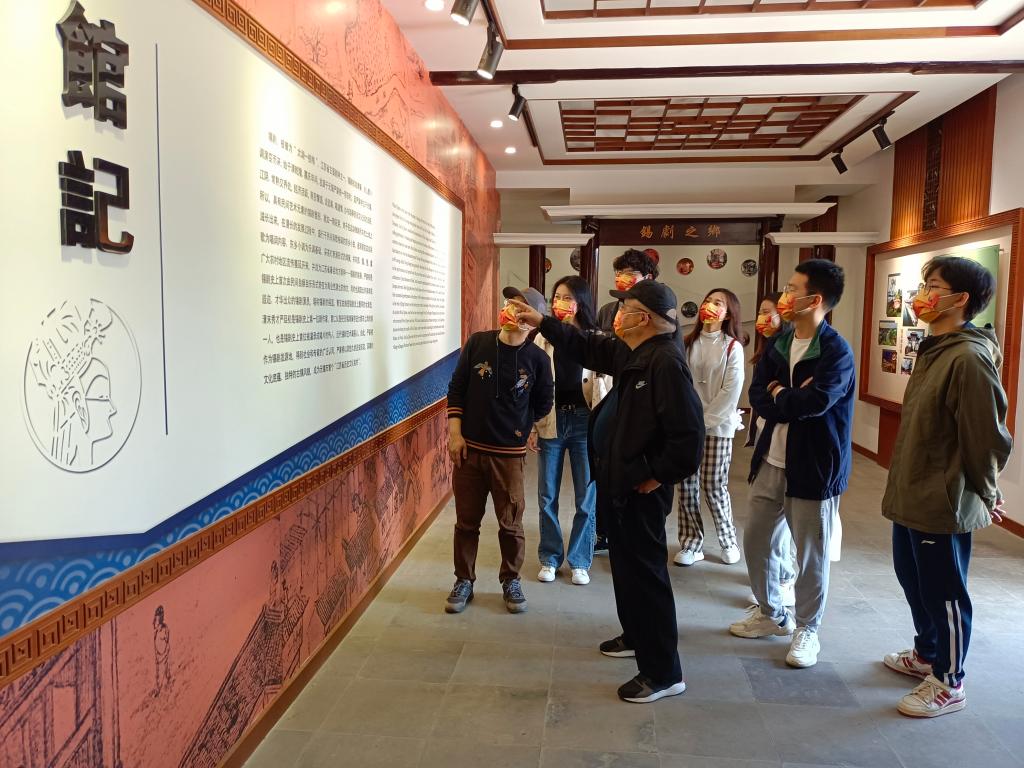 严家桥革命历史陈列馆位于无锡市锡山区羊尖镇,总占地面积369平方米,整体建筑是粉墙黛瓦、蠡窗映波的严家桥特色民居风格,主要由室内展示场馆和室外宣誓广场两部分组成。室内展区共计278平方米,依次由序厅、星火燎原、抗日救亡、迎接黎明、红色影厅五个篇章组成,主要展示严家桥的大革命时期、抗日战争时期、解放战争时期的革命征程。同学们在老党员们的带领下,依次参观学习,通过观看纪录片、实物、图表、史料图片文字等展品,沉浸式了解严家桥革命人物谱系和革命历史地图,重温峥嵘岁月,赓续红色血脉,感悟革命精神。参观中,老党员袁伯兴向同学们介绍道:“严家桥是党在锡东地区最早建立党组织并开展革命活动的地区之一。从大革命时期的中共怀下区委驻地,到抗日战争时期严安区和严宛区政府所在地,到解放战争时期中共澄锡虞工委地下交通站,谭震林、谭启龙,李坚真、钱敏、何克希、叶飞、包厚昌等众多党的干部都在这里留下了足迹。”师生一行还参观了位于严家桥村的唐氏工商业陈列馆、锡剧纪念馆、唐苑,踏着唐氏先祖发展的踪迹,学习感悟唐氏家族实业报国的精神力量。